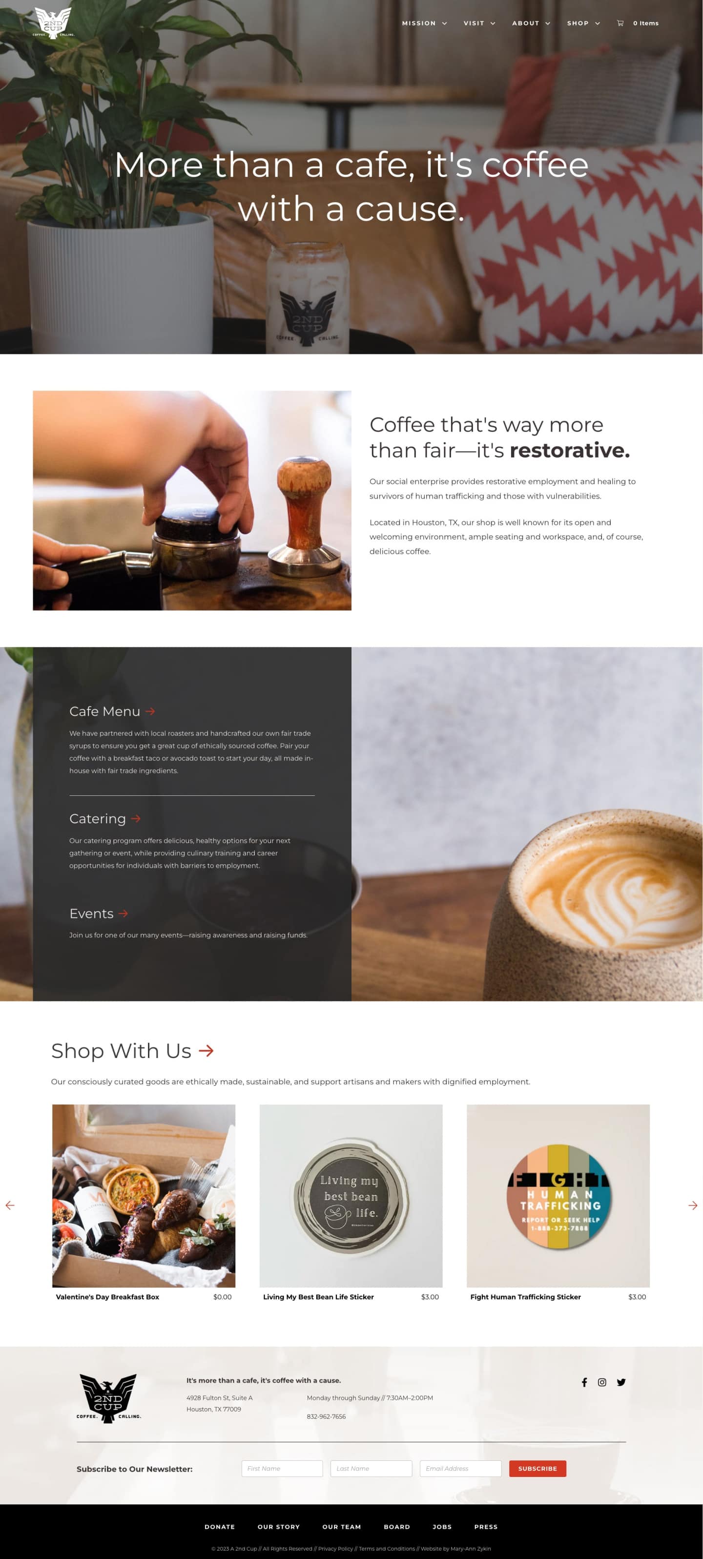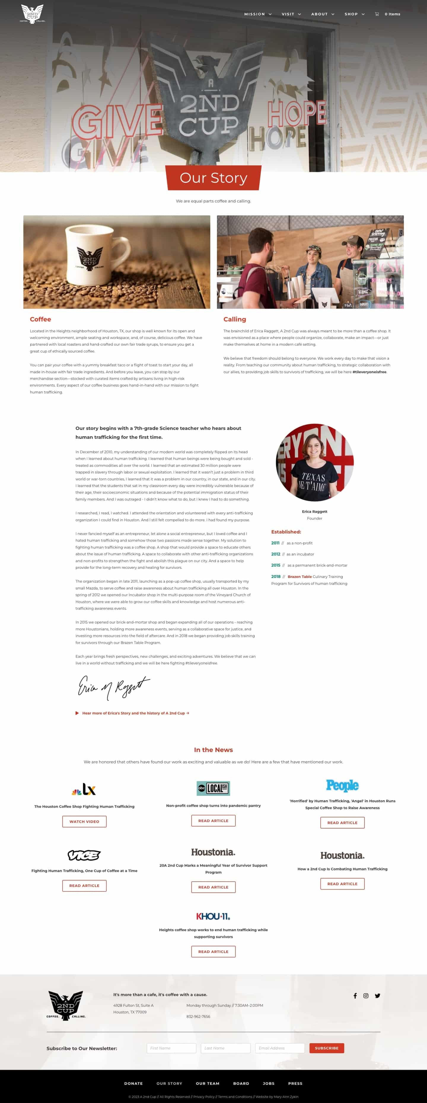 A 2nd Cup is a thriving coffee shop with a noble purpose—to raise awareness about and fight against human trafficking and actively engage in the effort to end the horrid practice.