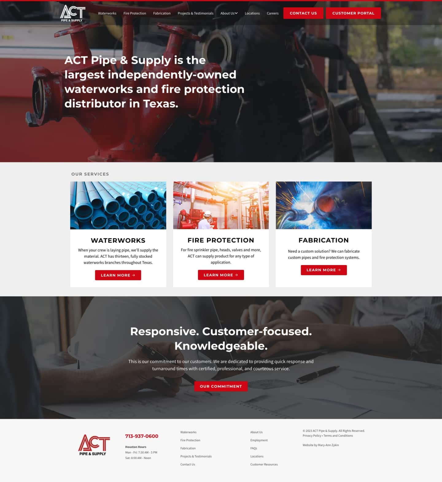 ACT Pipe & Supply is a well-established supplier in their industry who were looking for a major overhaul to their website. ACT had two clear goals going into this project: update the site with a modern design, and build it on a framework that allows site admins to easily maintain and edit the site in the future. I worked with ACT to deliver a complete website design that is engaging and builds a narrative around their company, services, and product lines.