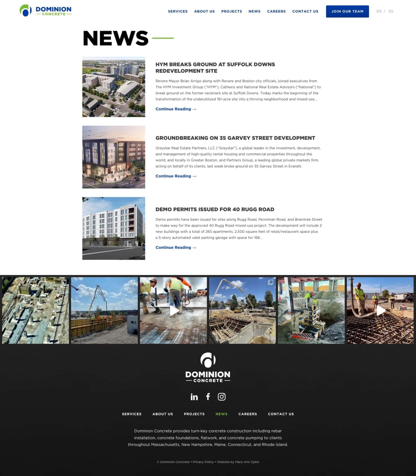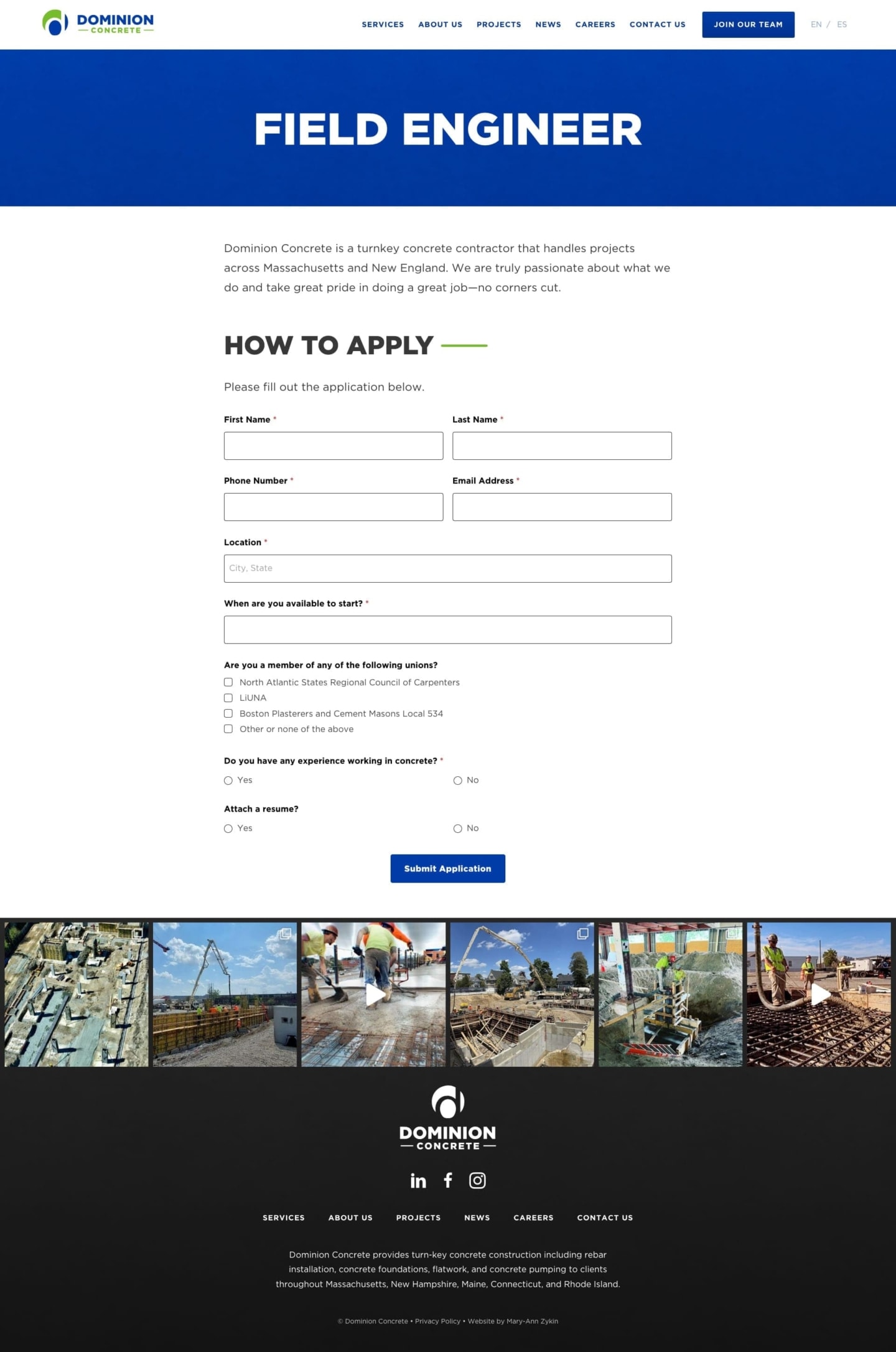 Dominion Concrete provides turnkey concrete services for customers across the Northeastern US. When I started working with them, they were a relatively new company formed only a few years prior. Their combination of a strong passion for concrete, a tight-knit culture, union job opportunities, and exciting projects enabled them to expand their workforce and contracts quickly, rapidly expanding their reach across New England.