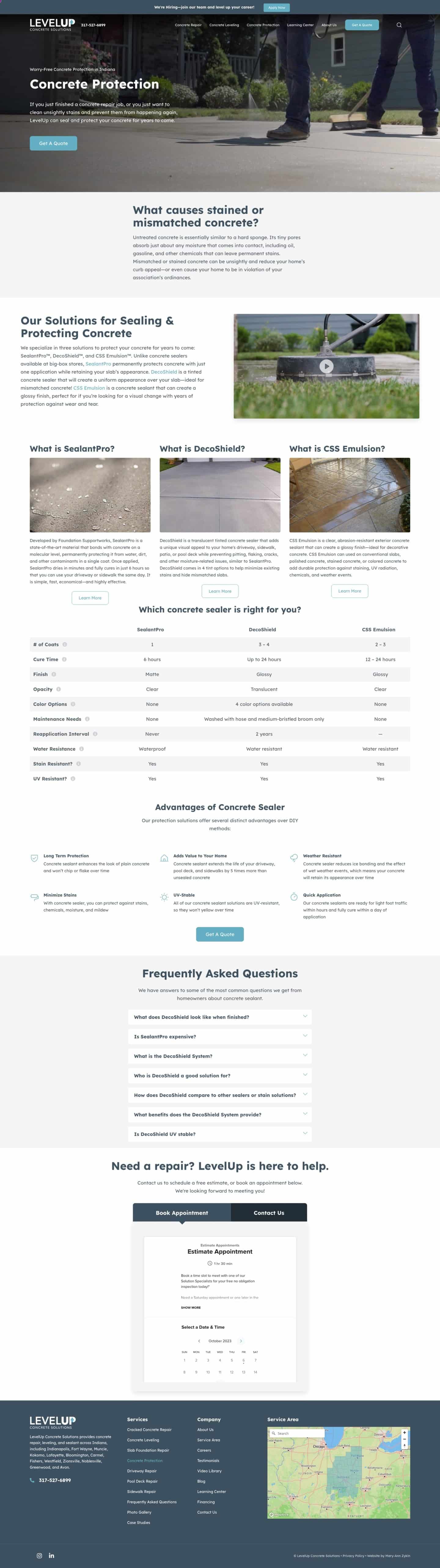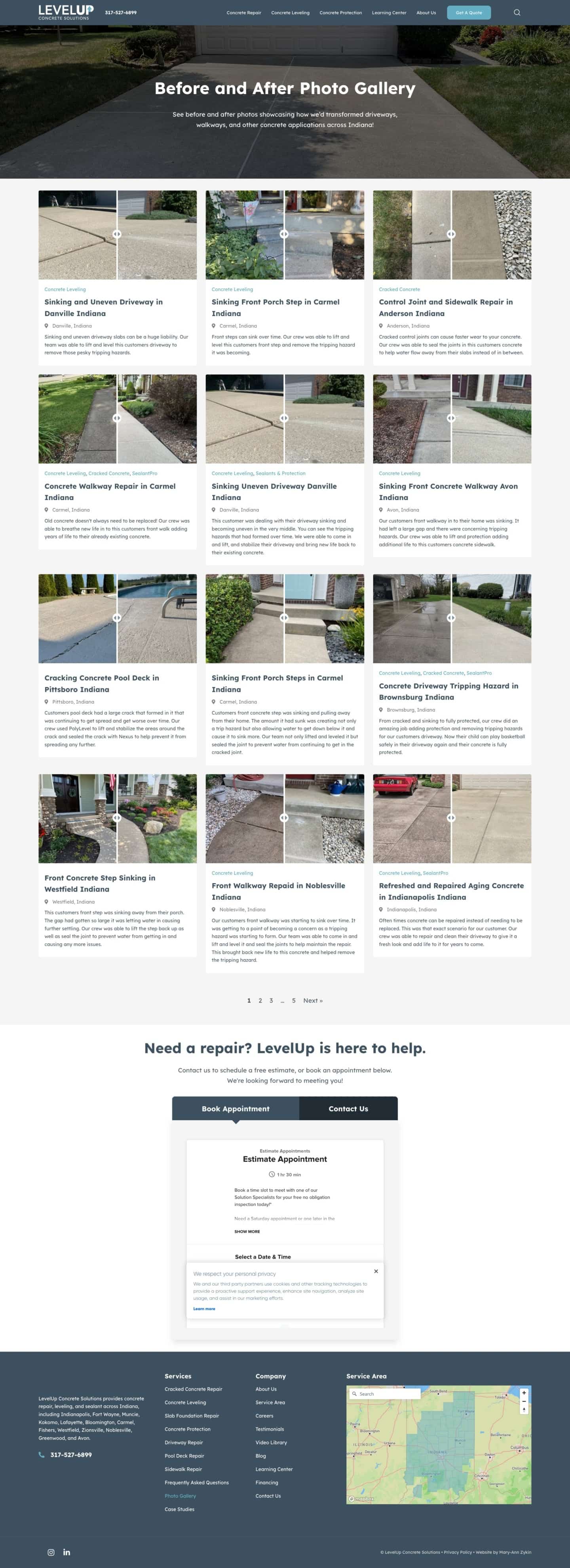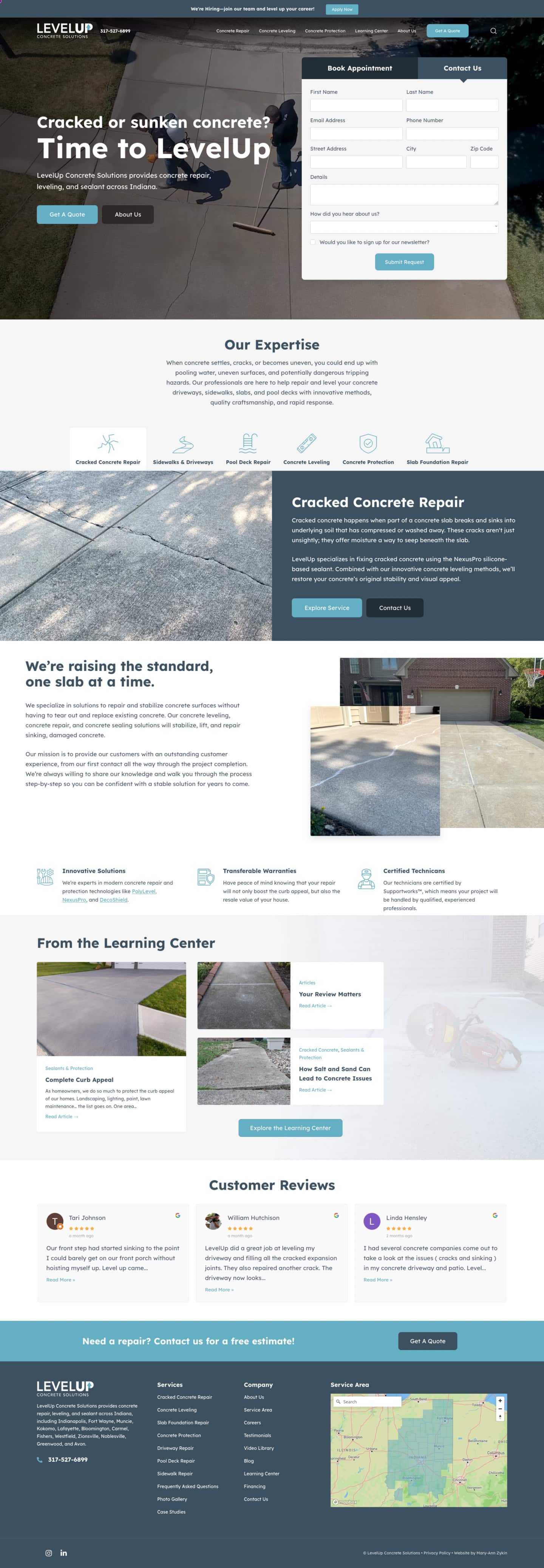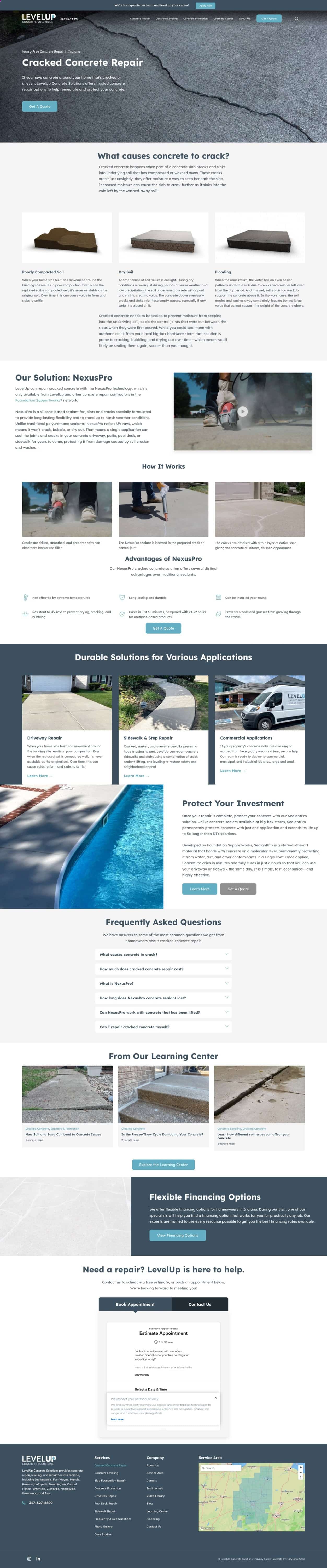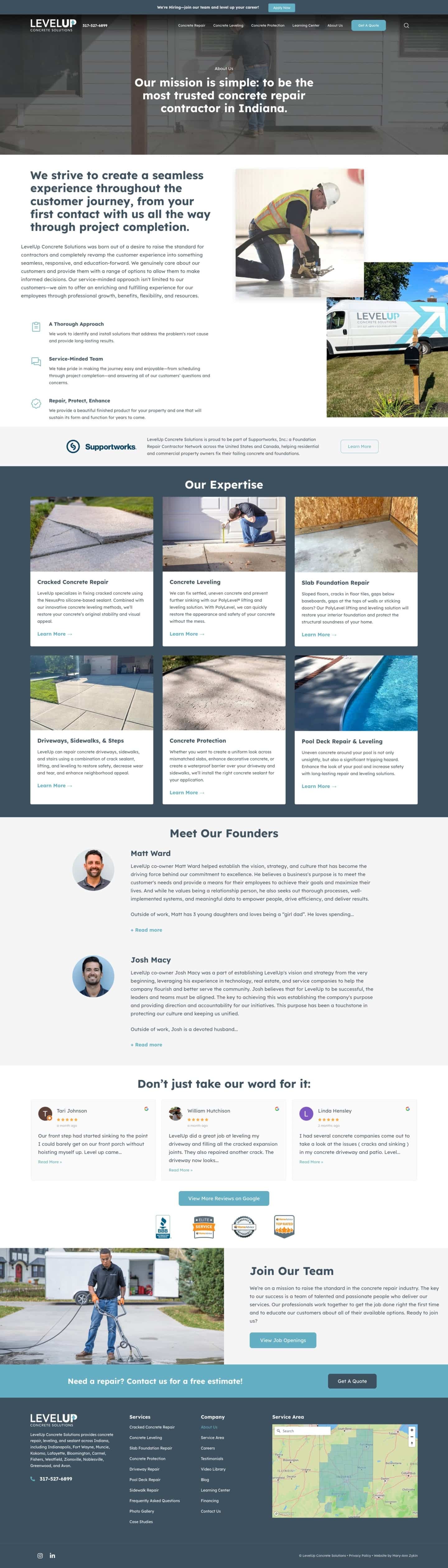 LevelUp Concrete Solutions provides concrete repair and leveling services in regions across Indiana. Because they are a relatively new company, organic growth was non-existent, and the company relied on PPC campaigns to drive traffic to the website. While the PPC approach successfully got search result clicks and customer leads, LevelUp desired more organic traffic that solidified them as established experts in their field.