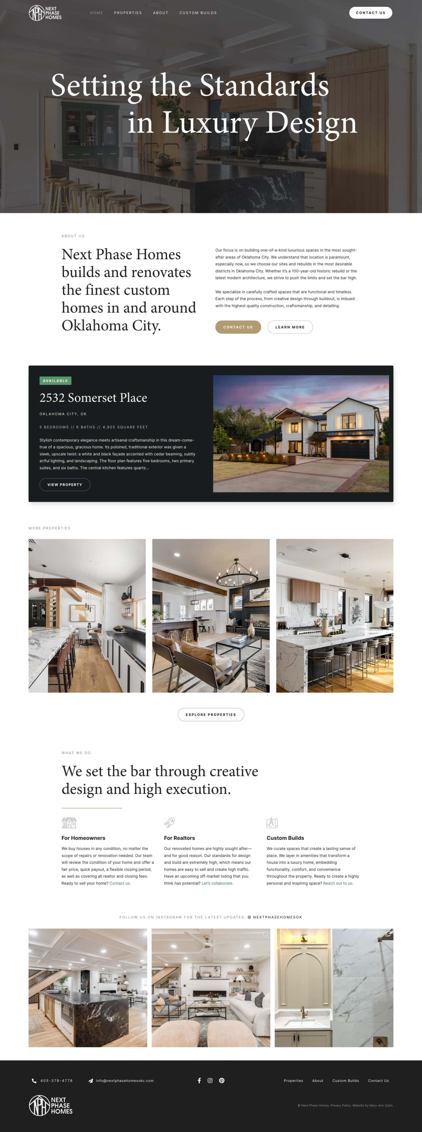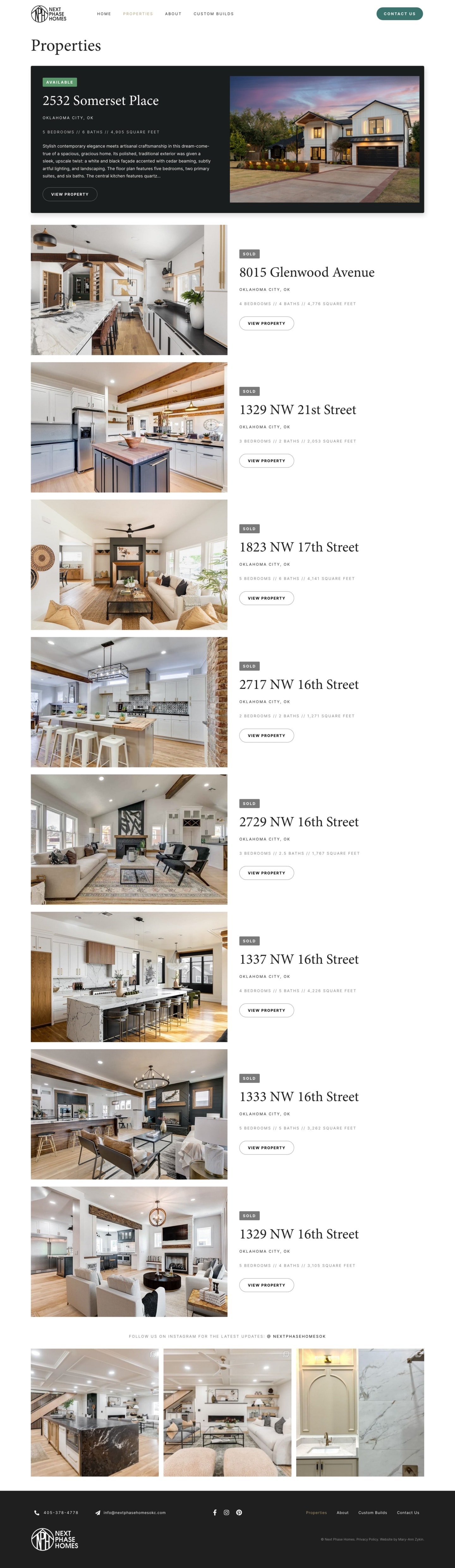 Next Phase Homes purchases and remodels homes while preserving their historic character around the Oklahoma City area. The old website was outdated and didn't reflect the quality of work they perform; on top of that, Next Phase Homes could not access their website and make critical updates, such as showcasing new properties!