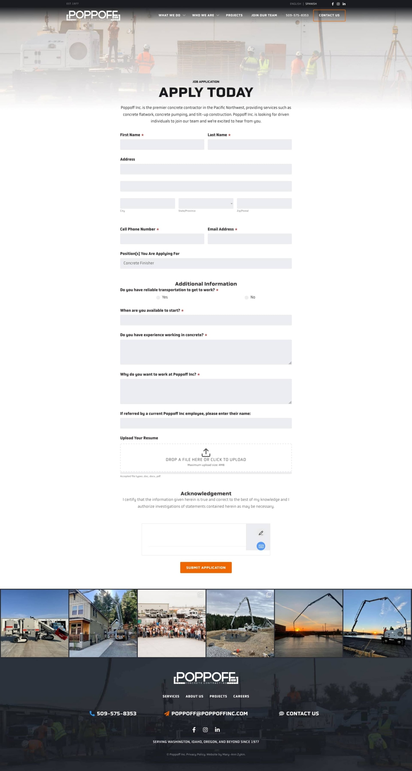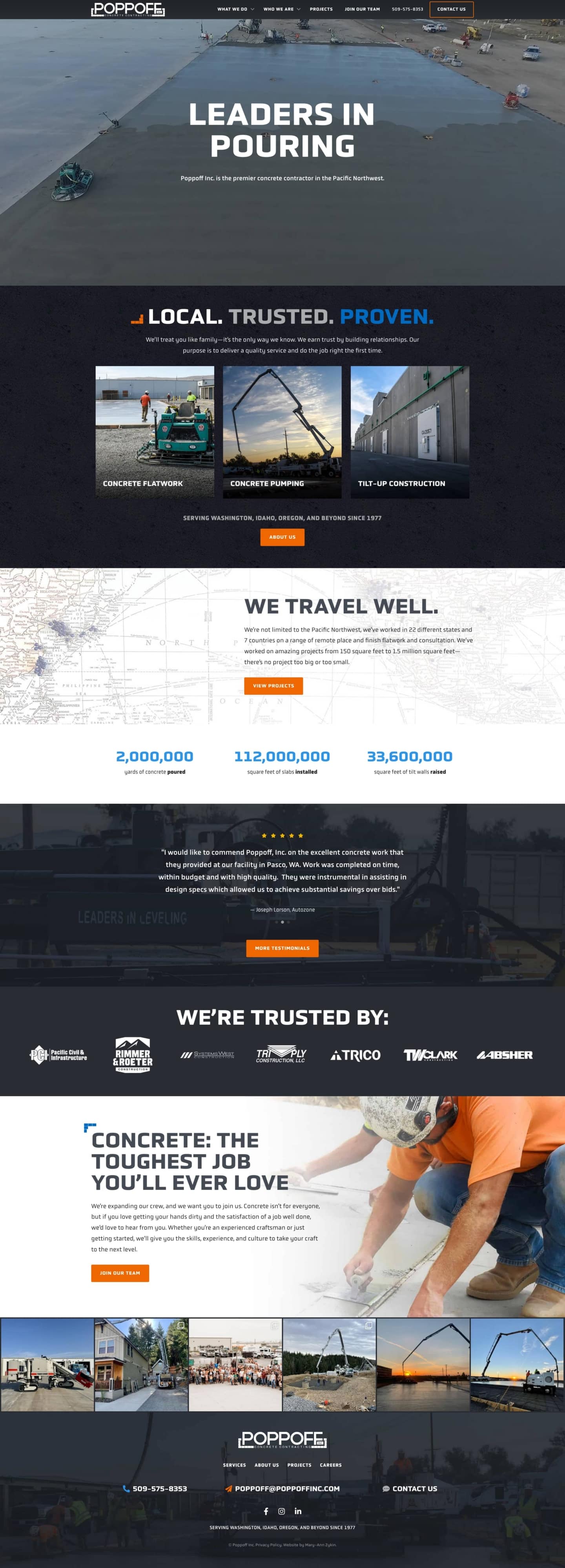 Poppoff Inc. is a provider of concrete services for commercial and industrial clients in Washington State. They have a number of large clients and customers on a regional level and were aiming to expand their capabilities with new, full-service concrete solutions—and ultimately, more employees.